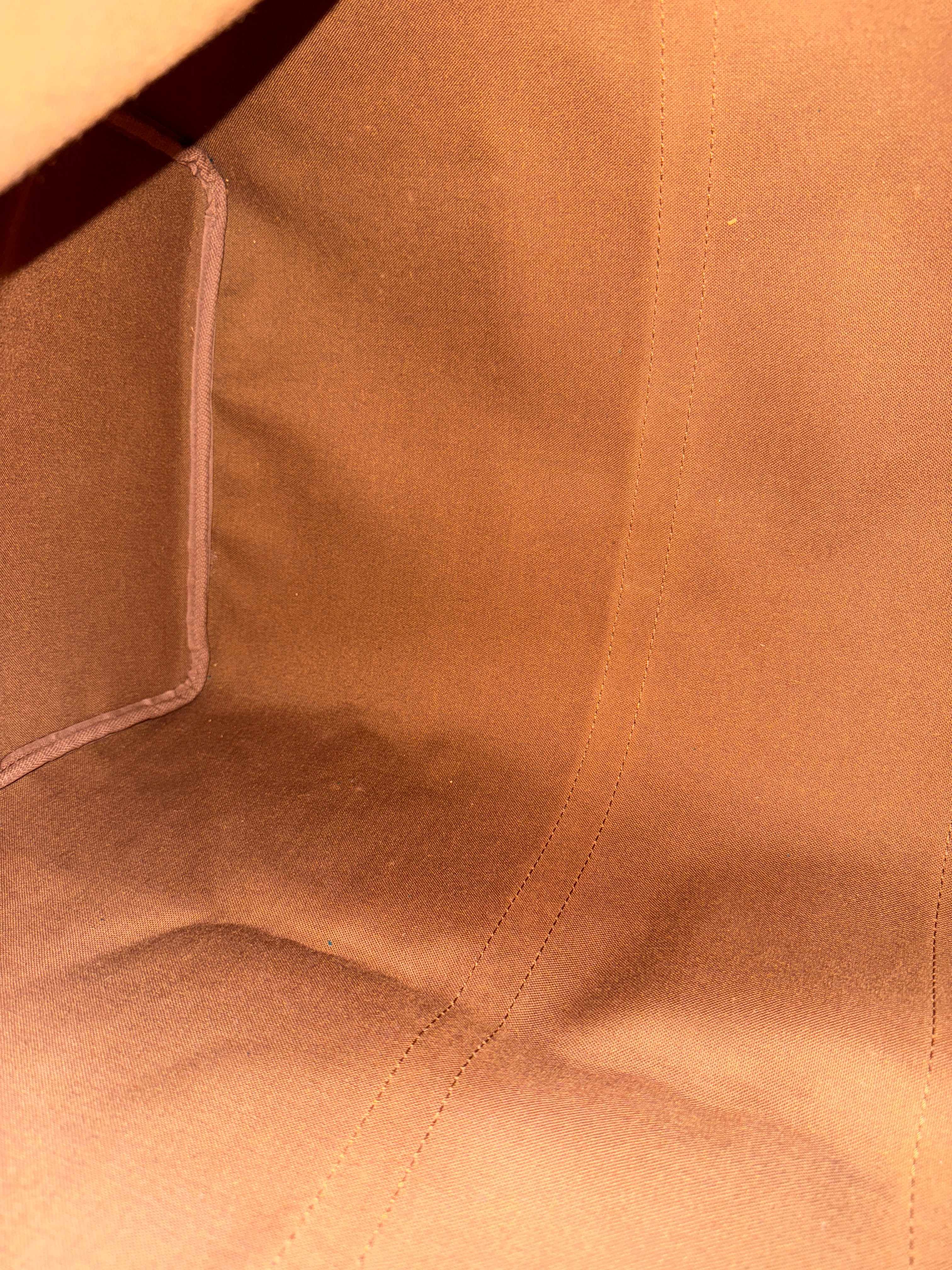 - Vachetta leather: Patina darkening, scratches and small stain marks