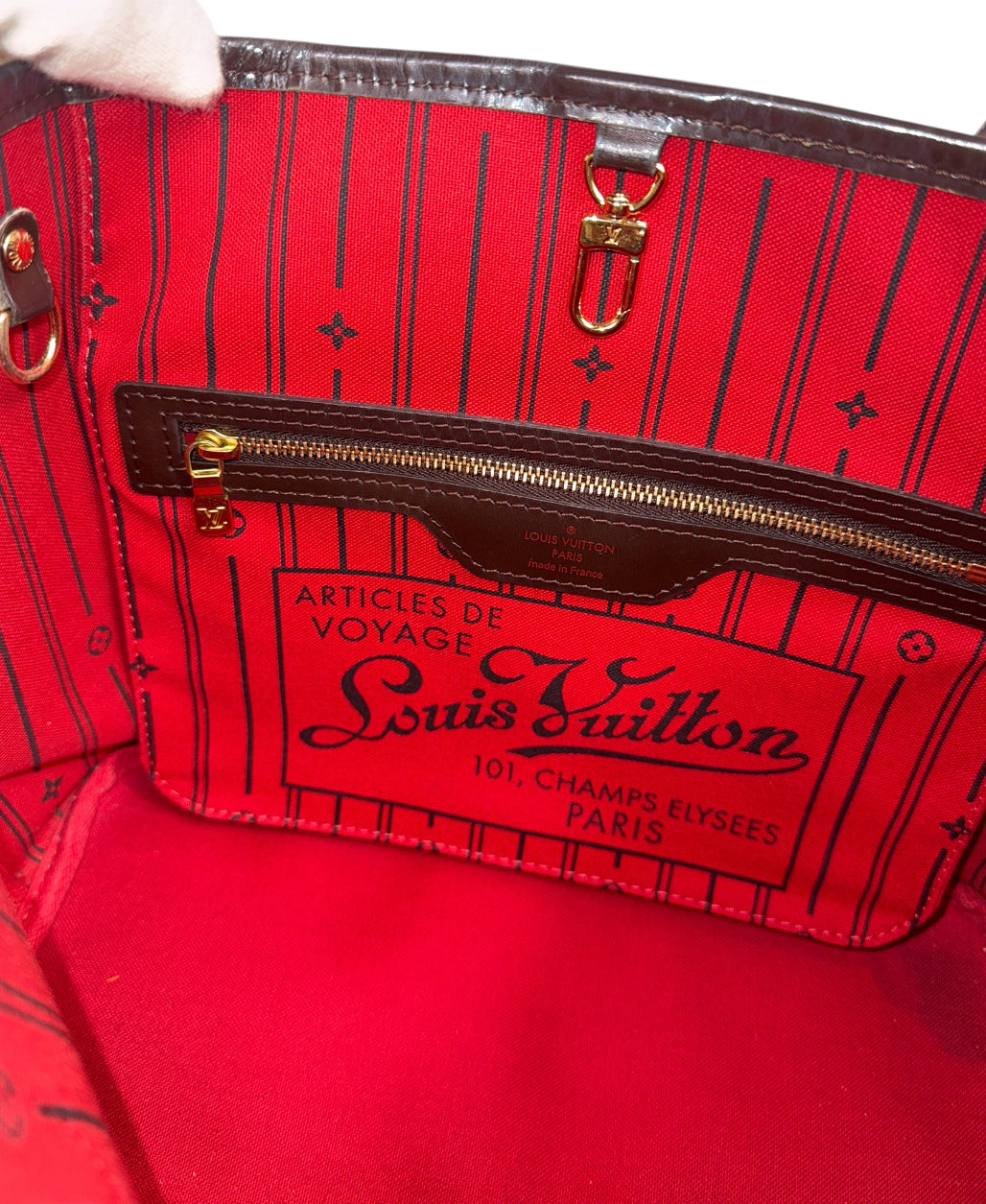 - Vachetta leather: Light scratches, one crack on the top edge trim